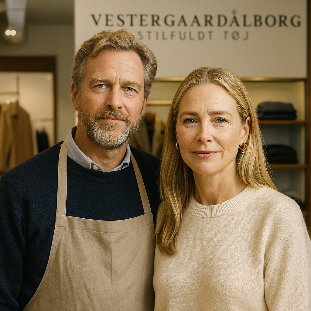 For ti år siden åbnede de Vestergaardålborg, en butik bygget på personlig service, nærvær og skandinavisk elegance. Her handler alt om at forstå kunden – at skabe noget, der passer, føles rigtigt og holder længe. Emil og Clara tror på, at mode skal være ærligt, tidløst og menneskeligt – og det mærkes i hver eneste kollektion og hvert eneste smil i butikken.